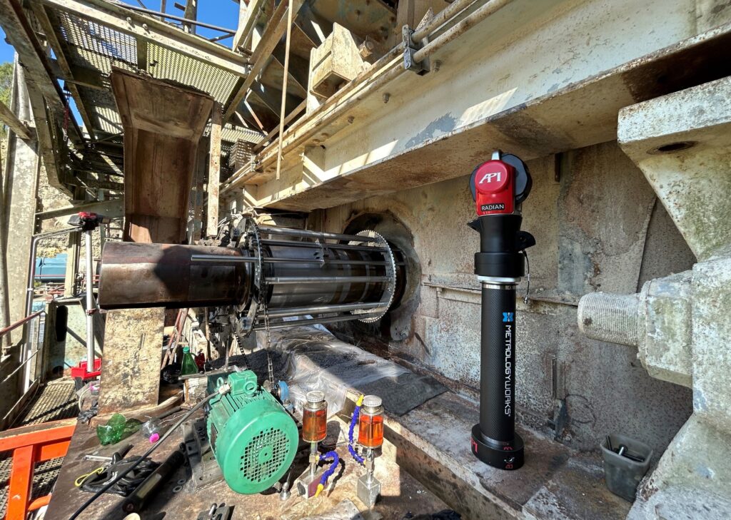 Étape 1 : Relevé initial au Laser Tracker pour distinguer les zones brutes des zones déjà reprises (correction thermique appliquée).